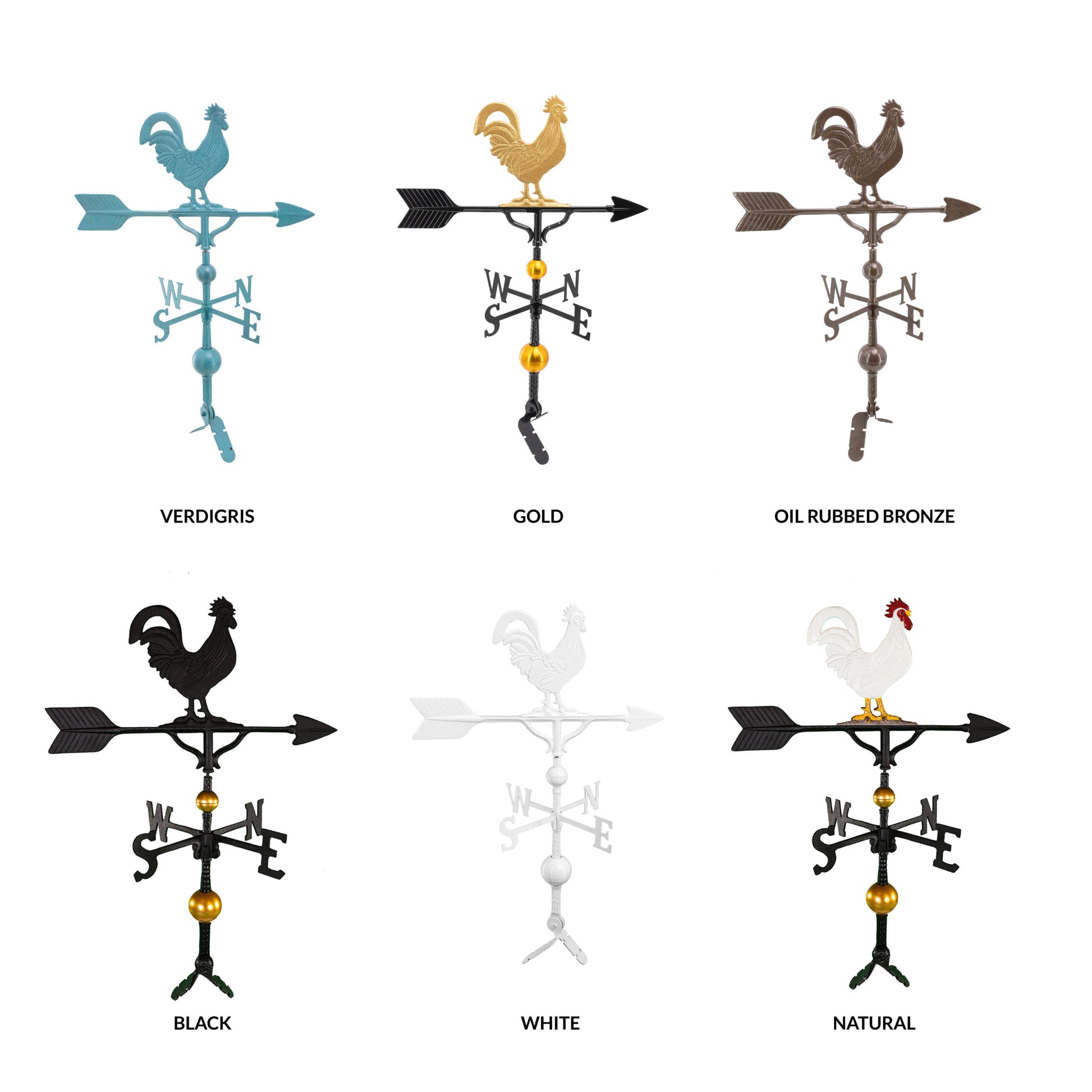 Rooster Weathervane - Made in the USA - Cupola Mount - Roof Mount Included - 6 Color Options